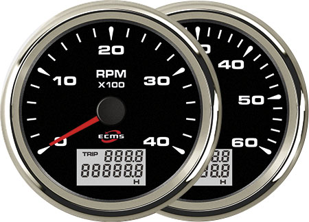 ECMS BLACK CHROME TACH/HOURMETER